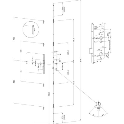 Pritvirtinkite Asgard 7025 skląsčio 3 kablius dvigubo suklio kelių taškų durų užraktą – 2 variantas (viršutinis kabliukas su velenu = 730 mm)