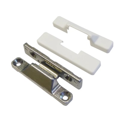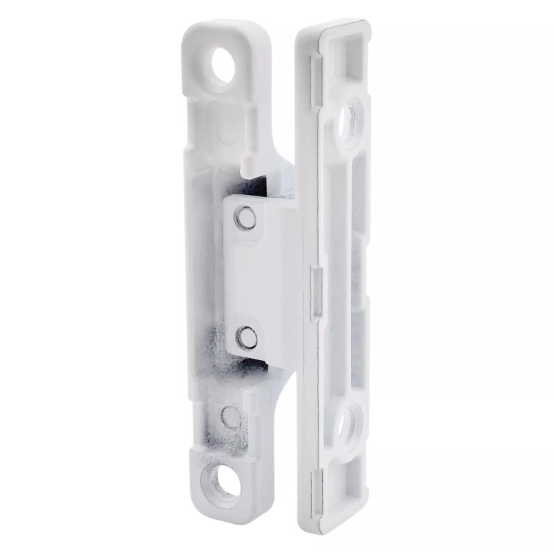 Plastiko, medžio ir aliuminio konstrukcijoje montuojamas papildomas spaustukas, metalinis, baltos spalvos.