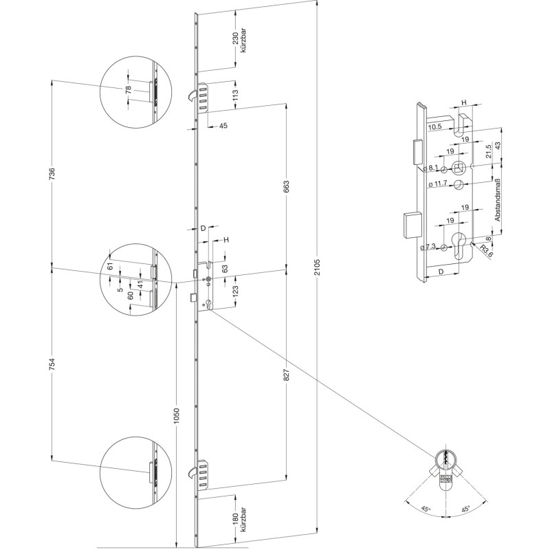 STV-FG 2060/45 92/8 M2 RS (20мм) WINKHAUS замок (арт. 1240446)